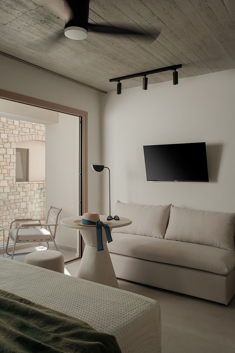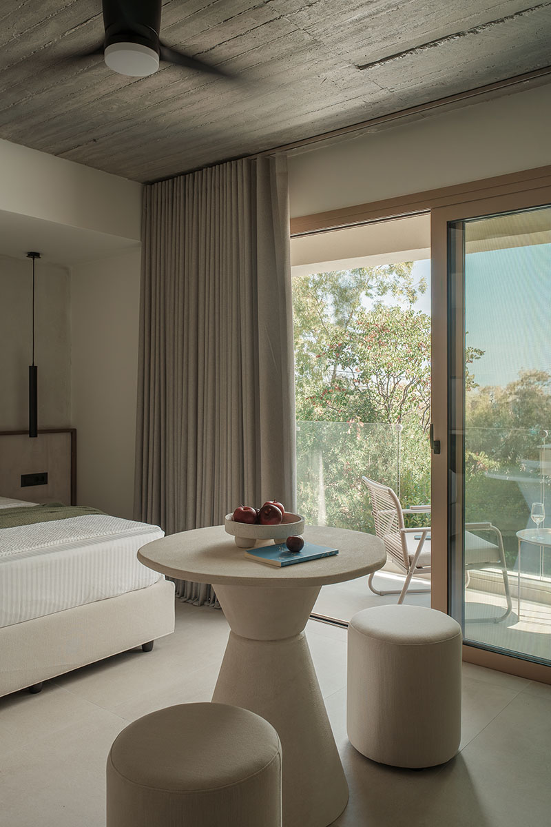 Our suite, spacious, elegant, and thoughtfully decorated, exudes a sense of tranquility and understated luxury. Privacy and comfort harmoniously coexist as you relax in a welcoming space with breathtaking views of the lush greenery and sparkling blue landscape.