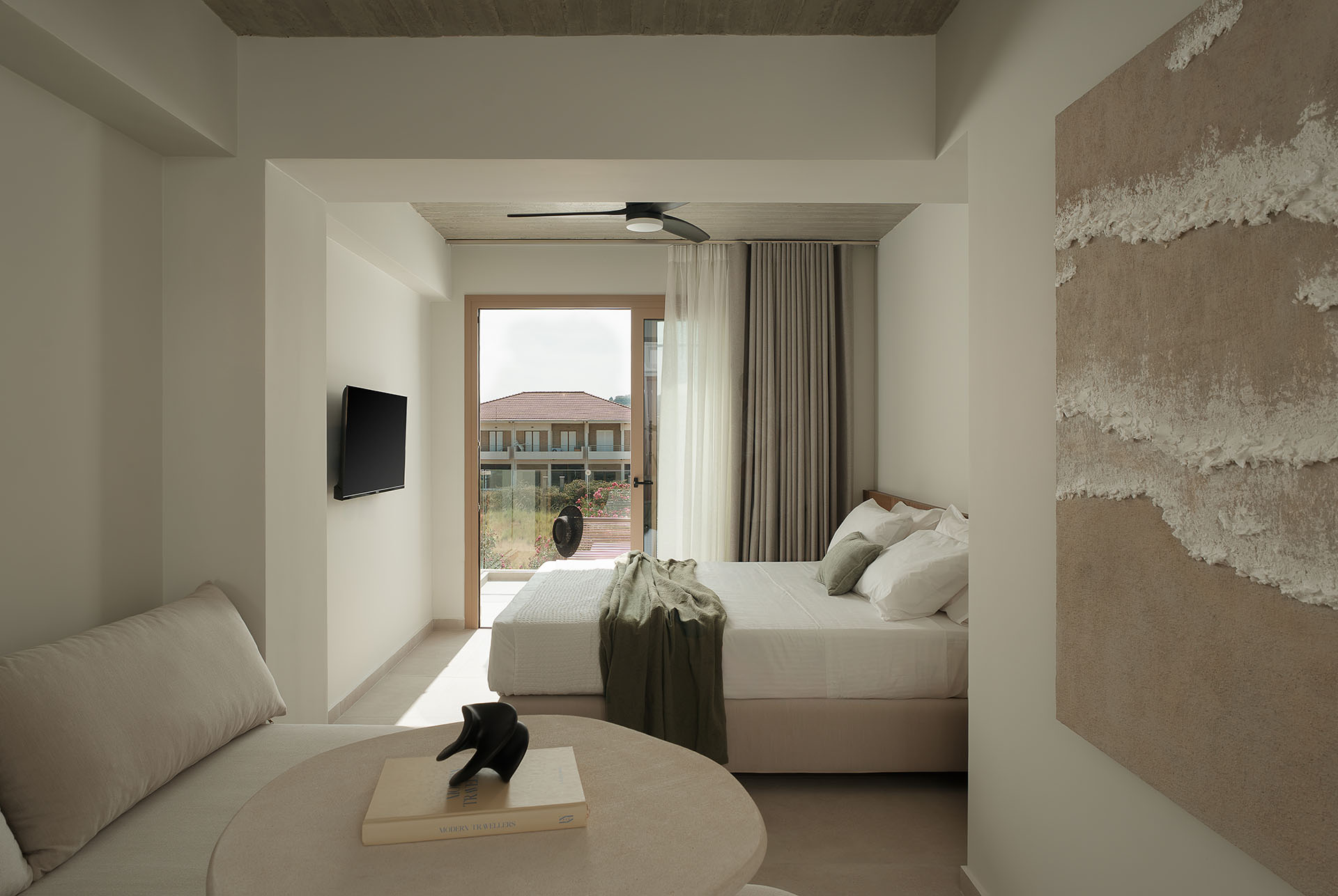 Η σουίτα μας συνδυάζει άνεση, κομψότητα και στυλ, σε έναν ευρύχωρο και προσεγμένα διακοσμημένο χώρο. Αφεθείτε στη χαλάρωση και απολαύστε τη μαγευτική θέα στη θάλασσα από την ιδιωτική, πλήρως εξοπλισμένη σουίτα σας.